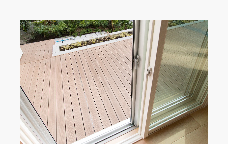 リビング横のテラスは広く開放感を演じているが、2重のドアの鍵が左で、ブラインドの操作が右側で、使いづらいのが気になった。