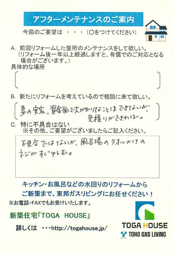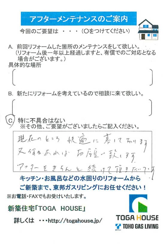 東邦ガスライフソリューションズでリフォームされたお客様の声をご紹介します。