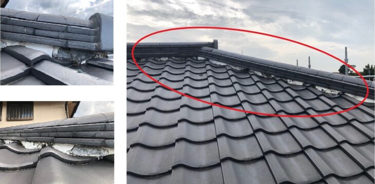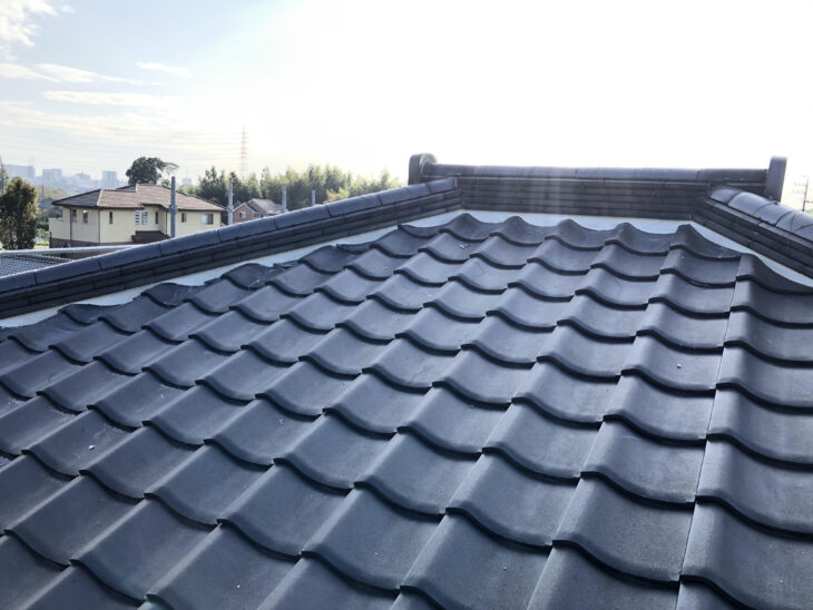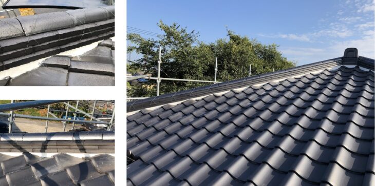施工内容:屋根 漆喰(しっくい)の修繕 施工日数:4日 棟(むね)※は、日本瓦の屋根において重要な個所でありますが、地震の影響を受けやすく、定期的にメンテナンスが必要な箇所でもあります。 漆喰(しっくい)で、瓦の隙間を埋めて防水をしていますが、経年によって劣化の可能性が。 BEFORE写真のように、屋根の下の葺き土(ふきつち)が露出してしまっていると、そこから雨水が染み込み雨漏れの可能性があるため、漆喰を再塗布しました。 ※棟(むね)・・・瓦と瓦が交わる部分、屋根の頂点。