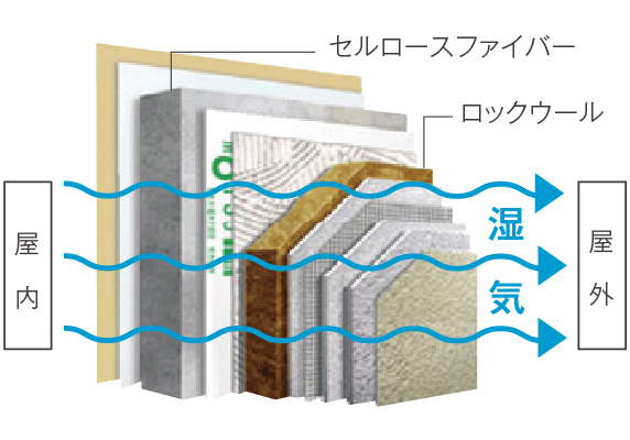 ハイブリッド断熱による205mmもの厚い外壁により高い断熱性能を発揮する、外断熱・アルセコシステム。耐火性・透湿性・対衝撃性にも優れたアルセコは、室内の温度・湿度が外気温に影響されにくく、冷暖房を省エネルギー化。一年中快適に暮らせる住空間をつくります。