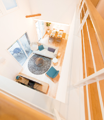 やさしく足元から温める床暖房の暖気を、吹き抜けを利用して家中に供給。のびのびとした快適な暮らしを後押しします。